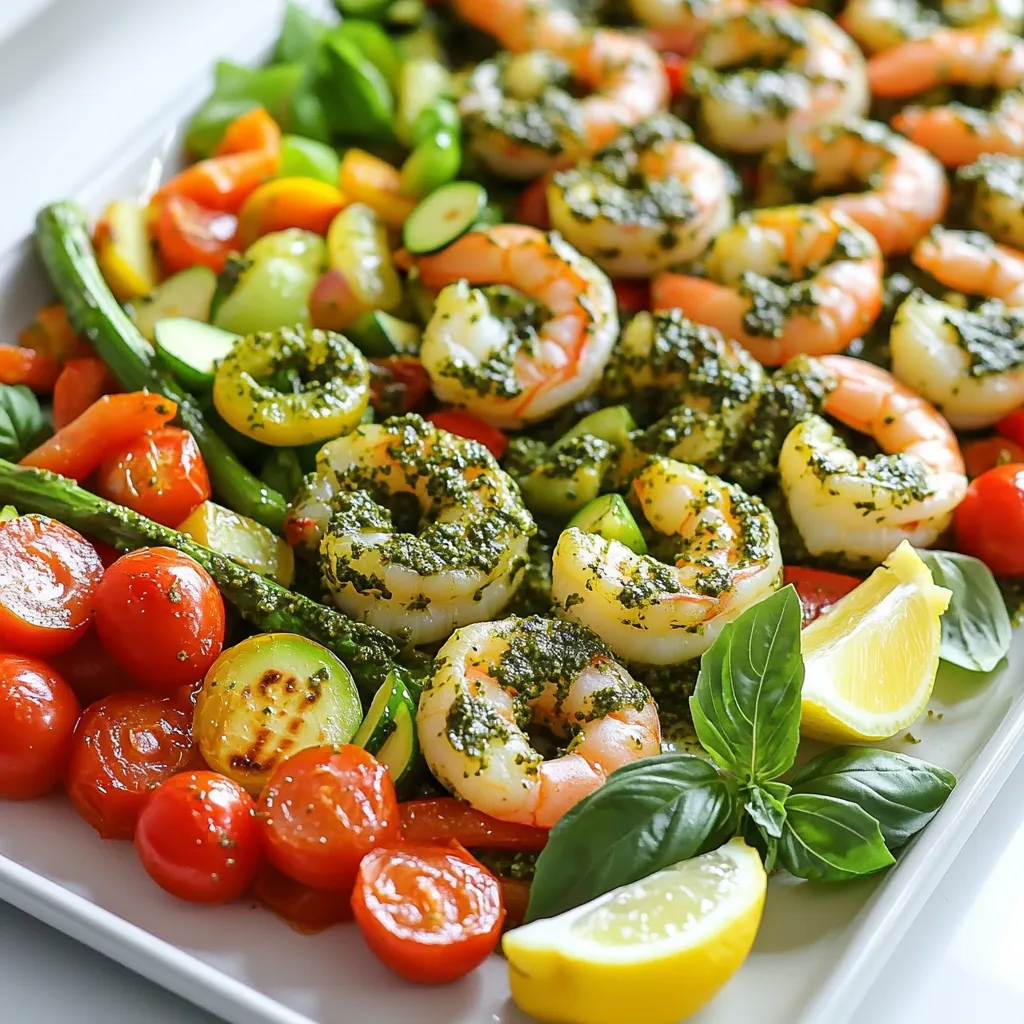 To make your Sheet-Pan Pesto Shrimp & Vegetables, gather these fresh and vibrant ingredients:
