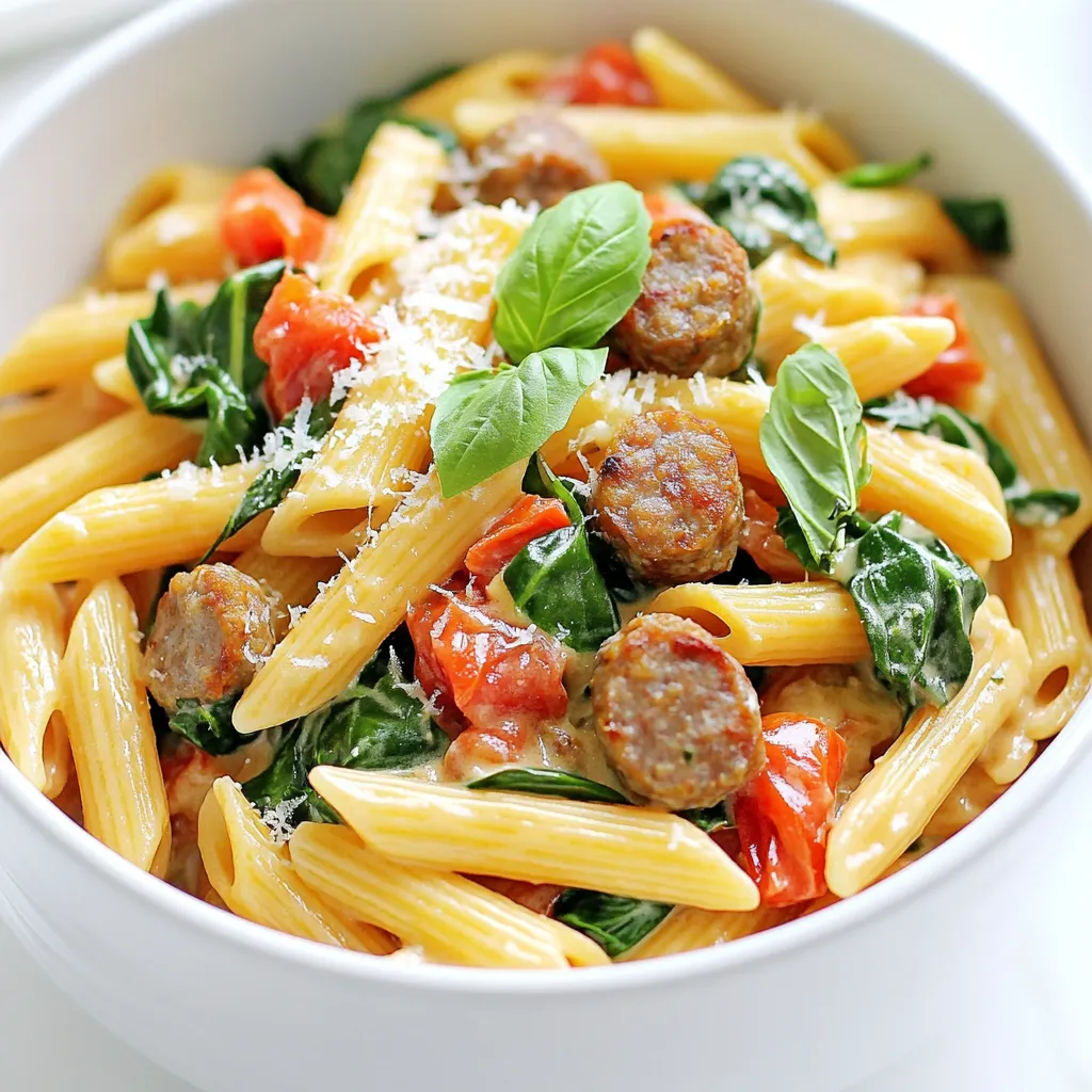 - 1 pound Italian sausage (or chicken sausage) - 1 medium onion, finely chopped - 3 cloves garlic, minced - 1 can (14.5 oz) diced tomatoes, undrained - 1 cup chicken broth - 1 cup heavy cream - 8 oz penne pasta, uncooked - 1 cup baby spinach To create a creamy and tasty dish, start with quality ingredients. I love using Italian sausage for its rich flavor. Chicken sausage works well too for a lighter meal. The onion and garlic add depth, while the diced tomatoes give a pop of color and moisture. Chicken broth enhances the taste, making every bite savory. Heavy cream is key for that luscious texture, and the uncooked penne pasta absorbs all the goodness during cooking. - 1 teaspoon Italian seasoning - Salt and pepper to taste - Fresh basil leaves, for garnish - Grated Parmesan cheese, for serving Seasonings make the dish shine. Italian seasoning blends herbs that transport you to Italy. A pinch of salt and pepper balances flavors. Fresh basil offers a burst of freshness on top, while grated Parmesan brings a salty finish. These simple touches elevate your creamy Tuscan sausage pasta to a gourmet level. First, you need to cook the sausage. Heat a skillet over medium-high heat. Add the Italian sausage and break it into pieces. Cook it until it turns brown. Drain any extra fat from the skillet. Then, transfer the cooked sausage to your slow cooker. Next, chop your onion and mince the garlic. Add both to the slow cooker with the sausage. This mix adds great flavor to your dish. Now, grab a can of diced tomatoes and pour it into the slow cooker. Do not drain them; the juice will add to the sauce. Next, add one cup of chicken broth. It helps to keep the pasta moist during cooking. Sprinkle in one teaspoon of Italian seasoning, salt, and pepper. Stir the mixture well to blend all the flavors. Cover the slow cooker and set it to cook. If you choose low, let it go for four hours. If you prefer high, it will be ready in two hours. About 30 minutes before serving, it’s time to add the pasta. Stir in eight ounces of uncooked penne pasta and one cup of heavy cream. Make sure to mix it well. Cover the slow cooker again and continue cooking until the pasta is al dente. Once the pasta is ready, toss in one cup of baby spinach. Stir until the spinach wilts. Taste the dish and adjust the seasoning if needed. Serve the pasta hot. Top it with fresh basil leaves and grated Parmesan cheese for a delightful finish. To boost the taste of your Slow Cooker Creamy Tuscan Sausage Pasta, try adding a pinch of red pepper flakes or a dash of smoked paprika. These spices bring warmth and depth to the dish. Fresh herbs like thyme or oregano can also elevate the flavor. If you want to switch up the sausage, you can use chicken sausage for a lighter meal or even turkey sausage for a leaner option. To get perfect pasta, add it to the slow cooker 30 minutes before serving. Make sure the penne pasta is uncooked when you add it. Stir it gently to prevent sticking. Check the pasta for doneness. It should be tender but still firm, known as al dente. If you prefer a creamier sauce, you can add a bit more heavy cream. For a lighter touch, use half and half instead. Presentation matters! Serve your pasta in shallow bowls. Top each bowl with extra grated Parmesan and a sprig of fresh basil for a pop of color. You can pair this dish with a simple side salad or garlic bread for a full meal. A glass of white wine, like Pinot Grigio, complements the flavors well. Enjoy your delicious creation! {{image_2}} You can easily make this dish vegetarian. Just swap the sausage for a plant-based protein. Options like lentils or chickpeas work great. They add protein and flavor. For extra veggies, consider adding bell peppers, zucchini, or mushrooms. These will give your dish more texture and taste. If you need a gluten-free meal, choose gluten-free pasta instead of penne. Cook it according to the package instructions before adding it to the slow cooker. Note that gluten-free pasta often cooks faster, so check it a bit earlier. This will help keep it from getting mushy. You can switch the heavy cream for a lighter sauce option. Try using half-and-half or even a non-dairy milk. For a tomato-based twist, add more diced tomatoes and skip the cream. This change offers a fresh flavor that is still rich and tasty. To keep your Slow Cooker Creamy Tuscan Sausage Pasta fresh, store it in an airtight container. This method helps lock in flavor and moisture. You can refrigerate it for up to 3 days. Make sure to cool the pasta before sealing it. If you want to save some for later, freezing is a great option. Divide the pasta into portions. Place each portion in a freezer-safe container. You can freeze it for up to 3 months. When you’re ready to eat, take it out and let it thaw overnight in the fridge. When it comes to reheating, you have two main options: microwave or stovetop. For the microwave, place a portion in a bowl and cover it with a lid. Heat it for about 2-3 minutes, stirring halfway through. For stovetop, use a skillet on low heat. Stir often until it's heated through. To keep the texture and flavor, add a splash of broth or cream while reheating. This helps restore the creaminess and avoids dryness. Enjoy your pasta just as delicious as when it was fresh! Yes, you can. For a lighter dish, try using milk or Greek yogurt. Both options add creaminess but keep the calories lower. Another choice is to use cashew cream. Just blend soaked cashews with water until smooth. This gives a nice texture without heavy cream. Adjusting serving sizes is simple. If you need more servings, just double the ingredients. For fewer servings, halve them. Keep the same ratios for flavor. Remember, cooking time may change slightly, especially for the pasta, so check it often. You can use frozen sausage, but it’s best to thaw it first. Cook it in a skillet until browned for even flavor. Then, add it to the slow cooker. If you add it frozen, the cooking time may need t