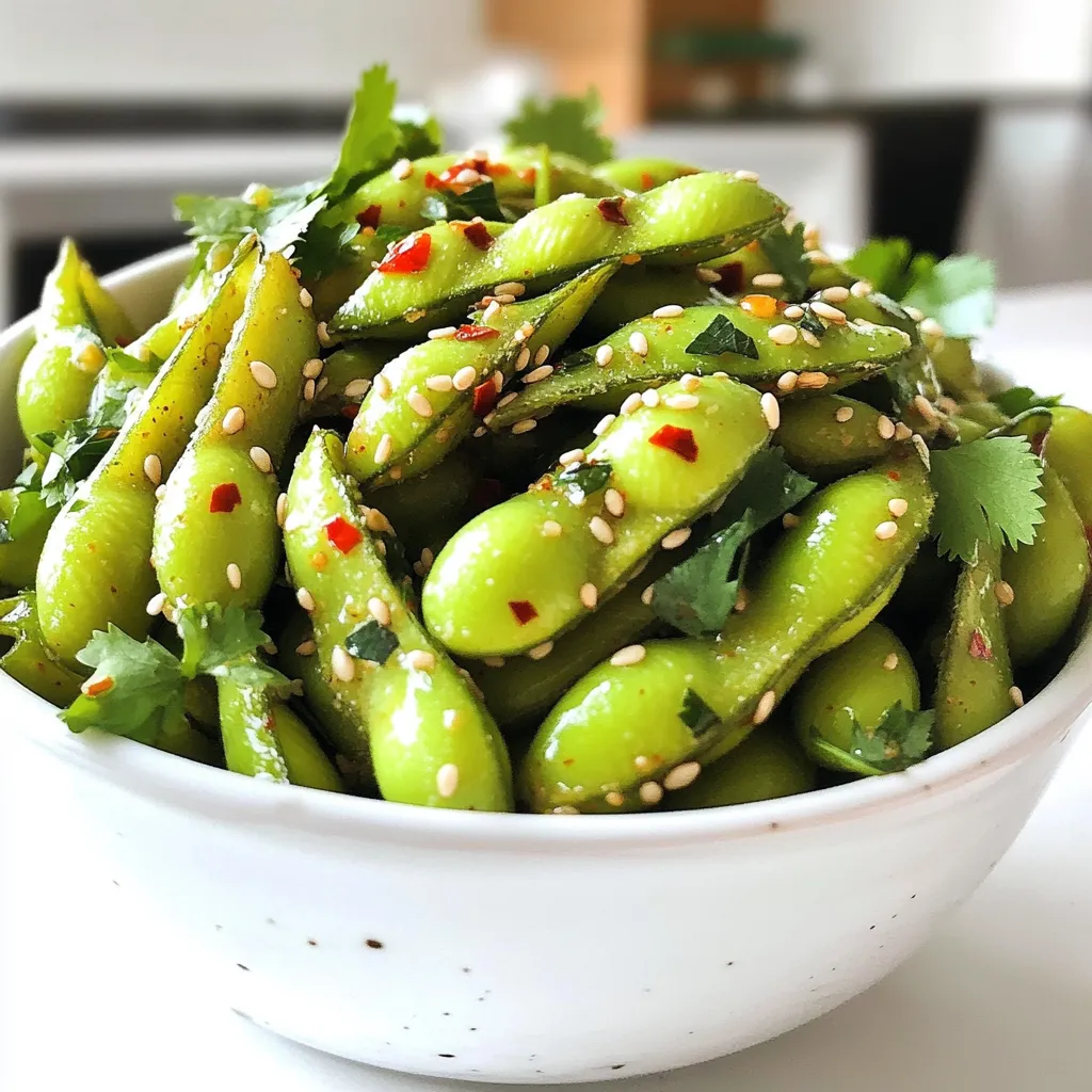 - 2 cups edamame in pods (fresh or frozen) - 4 cloves garlic, minced - 2 tablespoons olive oil - 1 tablespoon soy sauce - 1 teaspoon red pepper flakes (adjust for heat preference) - 1 teaspoon sesame oil - 1 tablespoon sesame seeds - Salt to taste - Fresh cilantro for garnish (optional) To make spicy garlic edamame, you need simple yet vibrant ingredients. Edamame is the star here. You can use fresh or frozen pods. They pack a healthy punch. You will also need garlic. Four cloves, minced finely, add great flavor. Olive oil is essential, too. It helps sauté the garlic and brings richness. Next, we have flavor enhancers. Soy sauce adds saltiness and depth. Red pepper flakes bring heat. Adjust the amount to fit your taste. A teaspoon works well for a nice kick. Lastly, sesame oil gives a nutty aroma and flavor. For garnishing, sesame seeds add crunch. Salt helps balance the dish. Fresh cilantro can elevate the look and taste. It’s optional, but I recommend trying it. Gather these ingredients, and you will create a tasty snack. To start, you need to boil your edamame. You can use fresh or frozen beans. If you choose frozen, boil a pot of salted water. This adds flavor. Once the water is boiling, add 2 cups of edamame. Cook them for 4 to 5 minutes until they are tender. After that, drain the beans and set them aside. Next, heat 2 tablespoons of olive oil in a large skillet over medium heat. This is where the magic begins. Add 4 cloves of minced garlic to the hot oil. Sauté the garlic for 1 to 2 minutes. You want it fragrant but not browned. Browned garlic can taste bitter, and we do not want that! Now, it’s time to spice things up. Stir in 1 teaspoon of red pepper flakes, 1 tablespoon of soy sauce, and 1 teaspoon of sesame oil. Mix these ingredients well. Cook this spicy mix for about 1 minute. The aroma will fill your kitchen and get your taste buds ready! Add the boiled edamame to the skillet. Toss the beans well to coat them with the spicy garlic mixture. Cook everything together for another 2 to 3 minutes until the edamame is heated through. Now, taste your dish and add salt if needed. Transfer the edamame to a serving bowl. Sprinkle 1 tablespoon of sesame seeds on top. If you like, add fresh cilantro for garnish. Enjoy your spicy garlic edamame! To tweak the heat in your spicy garlic edamame, start with less red pepper flakes. You can add more if you like it spicier. Just remember, a little goes a long way! If you want a milder snack, try using a pinch of black pepper instead. You can also skip the red pepper flakes completely for a gentle flavor. When picking edamame, choose beans that are bright green and firm. If you can find fresh edamame in pods, they are a great choice. However, frozen edamame works well too. It is often picked at peak freshness and frozen right away, which keeps the flavor strong. Just make sure to cook it properly for the best taste. Serving edamame can be fun. You can use a large bowl for sharing or individual cups for a more personal touch. To make it look nice, sprinkle sesame seeds on top right before serving. Adding fresh cilantro not only adds color but also gives a fresh taste. Arrange the pods in a circle for a lovely display that catches the eye. {{image_2}} You can add more spices to make your edamame more exciting. Try smoked paprika for a smoky taste. Cumin offers a warm, earthy flavor. You can also add citrus like lime or lemon juice. This makes the dish bright and fresh. Fresh herbs, such as basil or mint, can also enhance the taste. These additions will make your snack unique and tasty. This recipe is naturally vegan and gluten-free. Just check your soy sauce for gluten-free options. If you have nut allergies, you’re safe here too! The recipe contains no nuts. Always read labels to avoid hidden allergens. These small checks ensure everyone can enjoy this dish. Spicy garlic edamame works well with rice dishes. Serve it alongside stir-fries or grain bowls. You can also toss it in salads for extra crunch. This dish shines as a snack or appetizer too. It’s perfect for parties or movie nights. The bold flavors will impress your guests. Enjoy it warm or at room temperature. To keep your spicy garlic edamame fresh, store it in an airtight container. Place it in your fridge within two hours of cooking. This helps retain flavor and texture. Enjoy your leftovers within three days for the best taste. When you want to enjoy your edamame again, the best way to reheat it is in a skillet. Heat a small amount of olive oil over medium heat. Add the edamame and stir for a few minutes until warm. This method keeps the flavor intact. Avoid using the microwave, as it can make the edamame soggy. If you want to save some for later, freezing is a great option. Place the cooled edamame in a freezer-safe bag. Remove as much air as possible before sealing. They can last up to three months in the freezer. When you're ready to eat, thaw them in the fridge overnight. This helps keep their nice texture. You can use other beans, but edamame shines best here. Edamame has a unique flavor and texture. It is tender, slightly sweet, and nutty. Other beans may not give the same taste. For best results, stick with edamame for this recipe. To lower the spice level, reduce the red pepper flakes. You can start with just a pinch. Add more soy sauce or sesame oil for balance. Mixing in a bit of honey can also help. This adds sweetness that cools the heat. Edamame is packed with nutrients. It is high in protein, fiber, and healthy fats. One cup has about 17 grams of protein. This can help keep you full longer. Edamame is also rich in vitamins like K and folate. Eating it supports heart health and aids digestion. It’s a smart choice for a healthy snack. This blog post covered how to make a tasty edamame dish. We explored the main ingredients, flavor enhancers, and garnishing options. Cooking steps included preparing edamame, sautéing garlic, and combining flavors. I shared tips fo