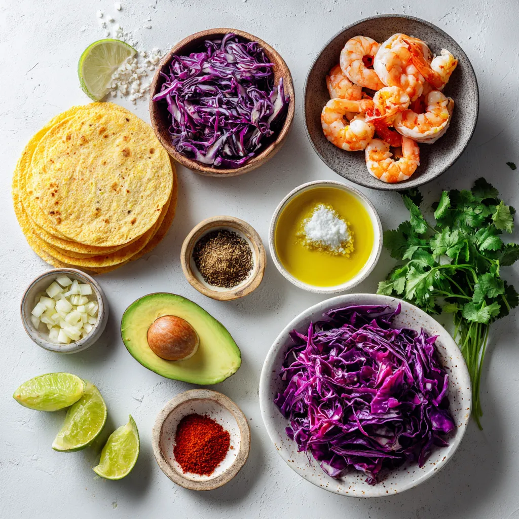 For the tacos, I like small corn tortillas. They hold the filling well. Shredded red cabbage adds crunch and color. A ripe avocado makes the dish creamy. Fresh cilantro provides a fresh touch. Lime wedges add zing when served. These ingredients come together for a tasty meal.