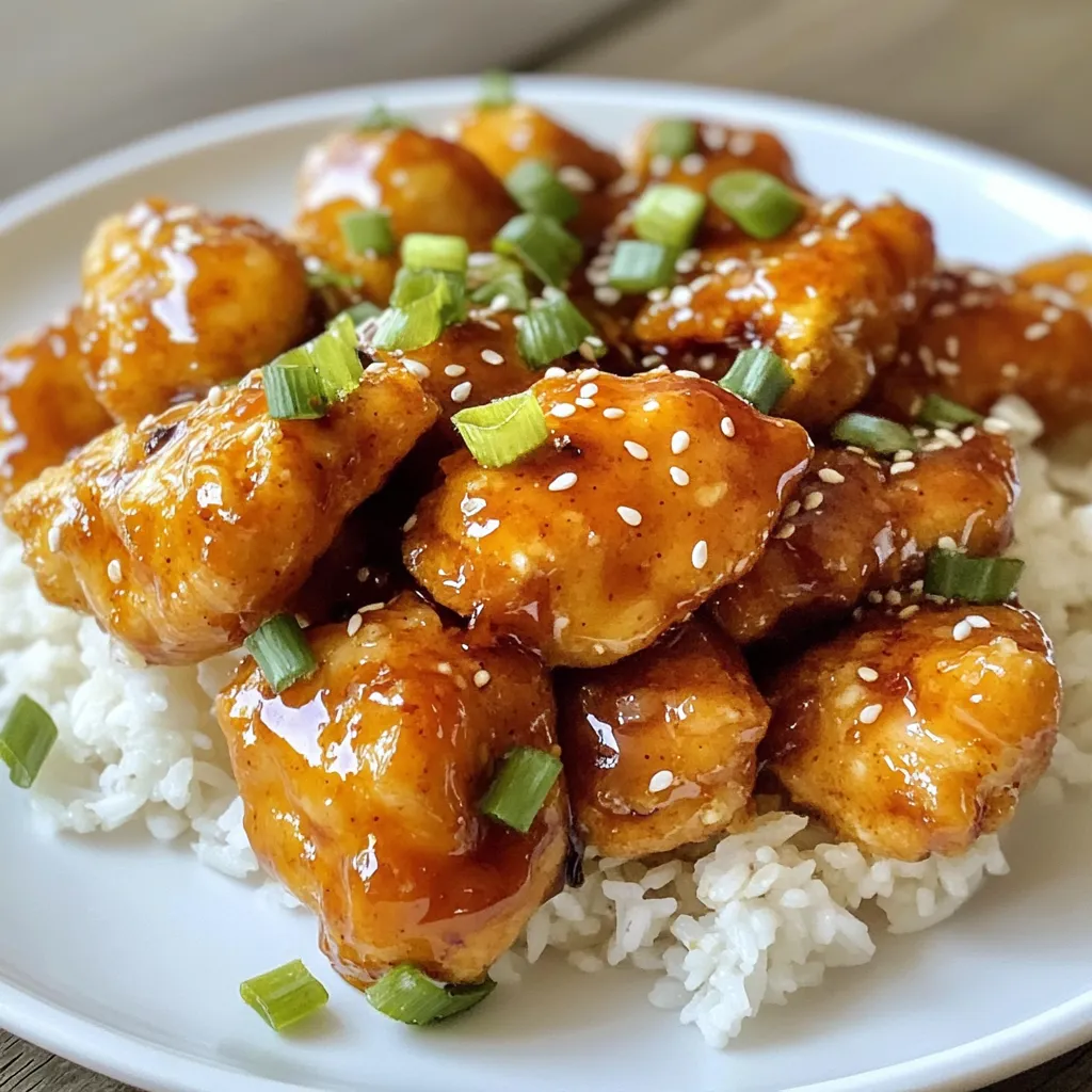 Deliciously crispy chicken bites coated in a spicy honey garlic sauce.