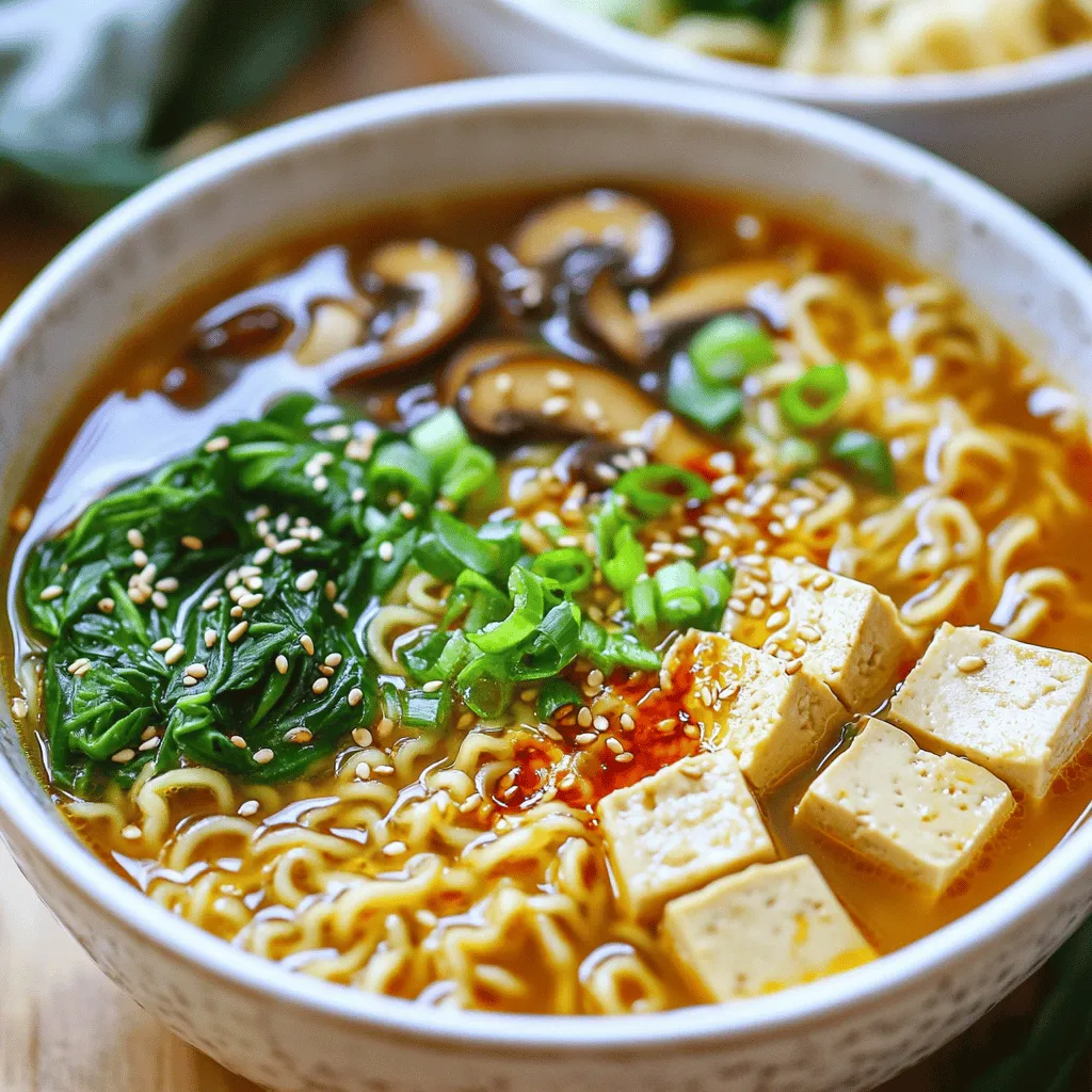 Serve your ramen in deep, wide bowls. This allows for a beautiful display of colors. Start with the noodles as a base, then add the broth. Top with vibrant greens like spinach and green onions. A sprinkle of sesame seeds adds a nice touch. For extra flair, you can add chili flakes on top for a pop of color and heat. These simple steps make your dish look as good as it tastes!
