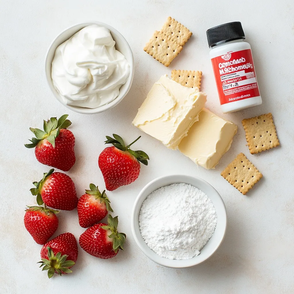You will also need 1/2 cup of sour cream. This adds creaminess and tang. Fresh strawberries are key; use 3/4 cup of diced strawberries to create that classic cheesecake taste. Finally, sprinkle 1/4 cup of crushed graham crackers on top for that crunchy finish. If you like, add extra strawberries for a pretty garnish.