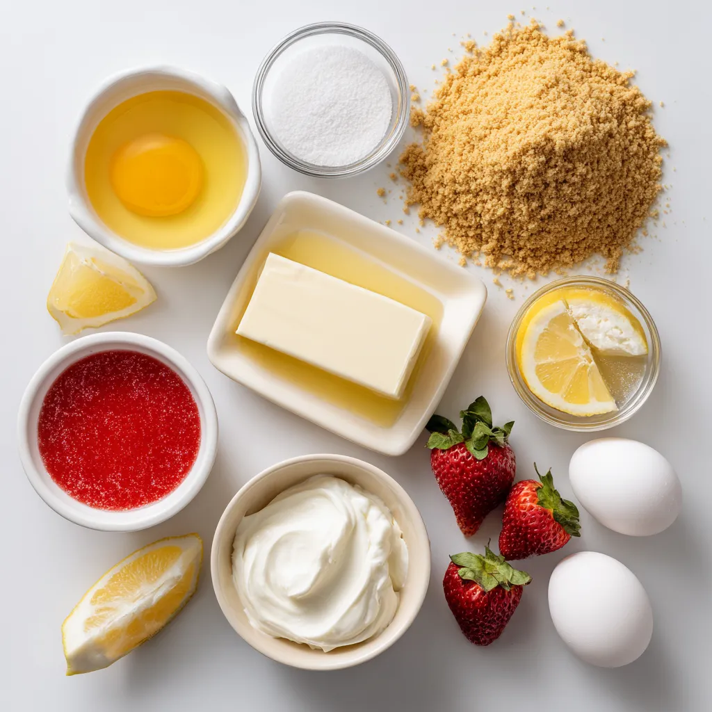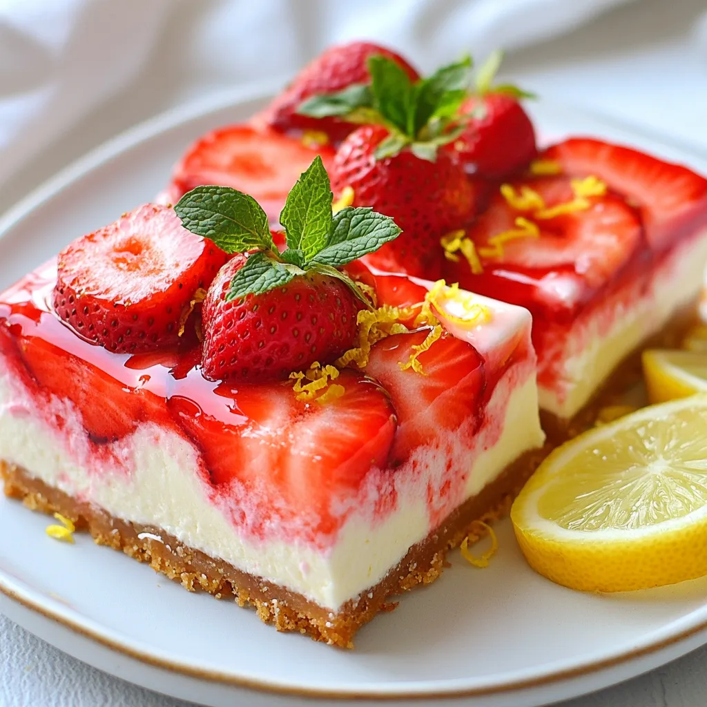 Graham cracker crumbs form the base. They give a sweet and crunchy texture. Use unsalted butter for better control of salt levels. Cream cheese provides that rich, creamy filling. Make sure it’s softened for easy mixing. Fresh strawberries add bright flavor and color. They bring a juicy sweetness to the bars. Pureeing the strawberries with cornstarch keeps the mixture from being too runny. This helps the bars hold their shape.