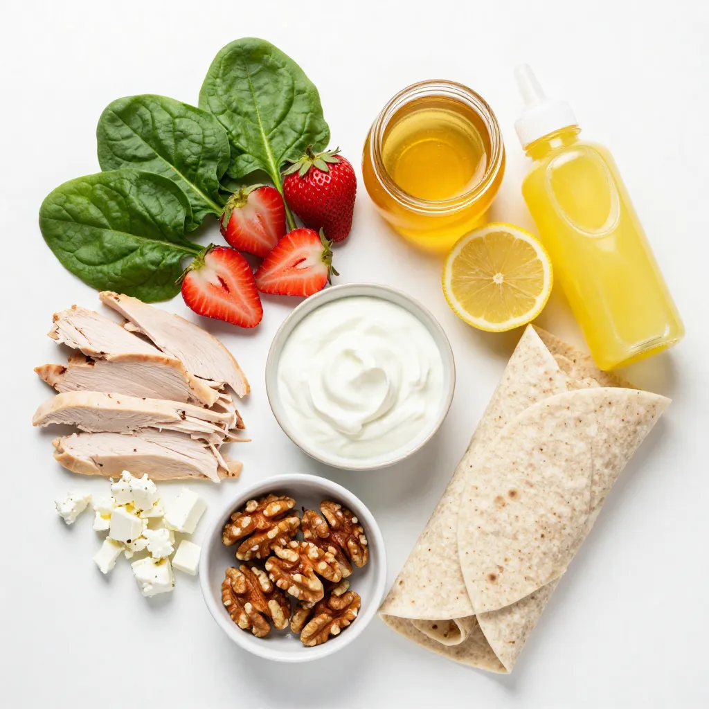 These wraps offer a balanced meal. They provide protein from chicken and healthy fats from walnuts. Spinach and strawberries add vitamins and minerals.