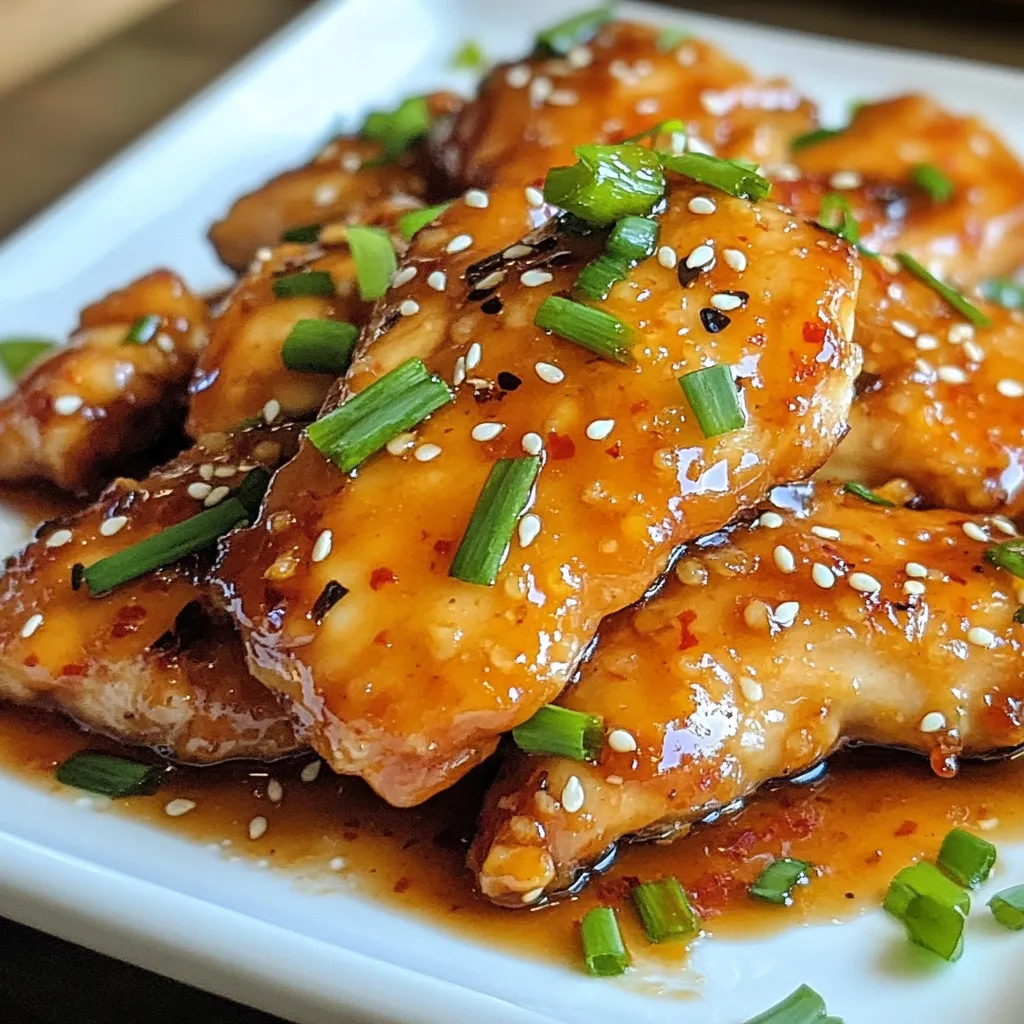 For this dish, you need simple, fresh ingredients. I love how they blend to create a tasty meal. The chicken is the star, and its flavor shines. The sweet chili sauce adds a unique sweetness. Garlic gives it a nice kick, while soy sauce brings depth. Honey adds a touch of natural sweetness. Ginger gives a hint of spice that makes this dish pop.