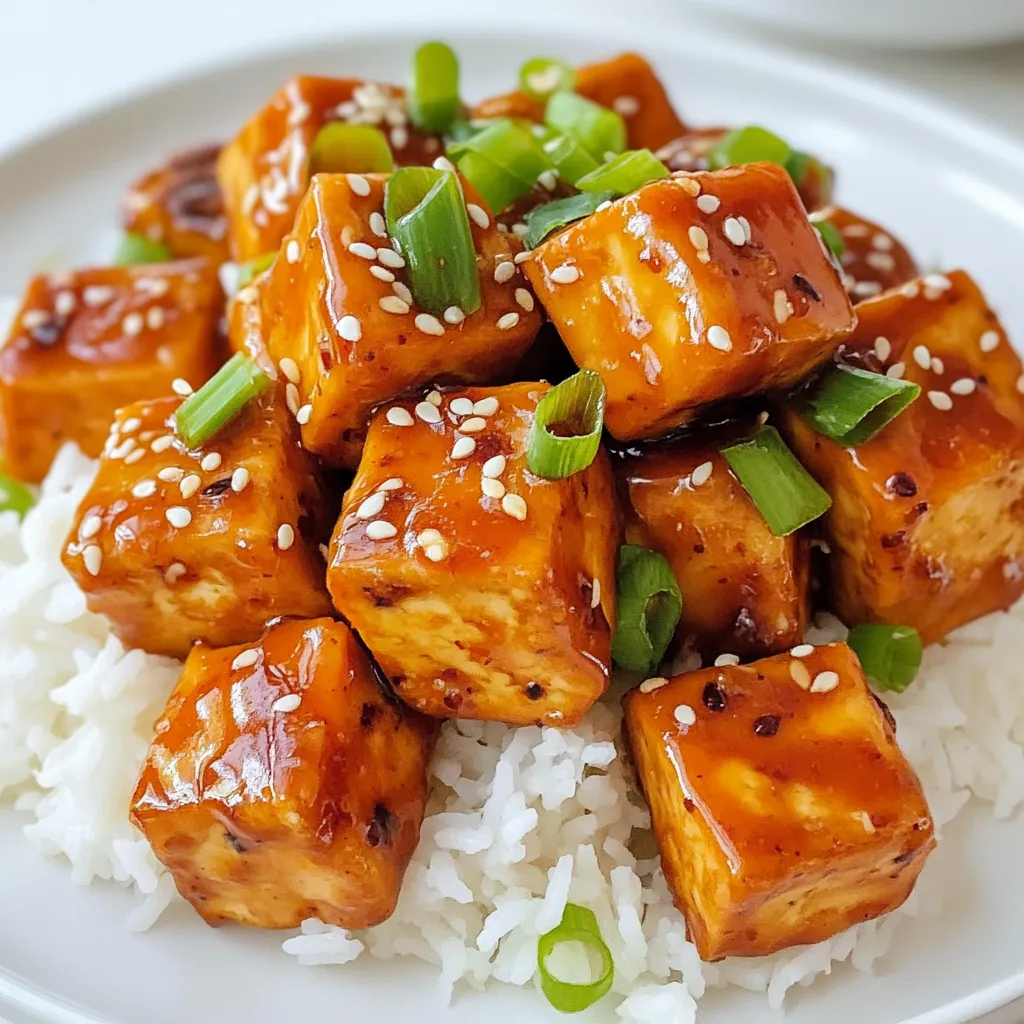 For garnishing, I use green onions and sesame seeds. They add color and crunch. Serving the tofu over jasmine rice makes it a hearty meal. Each bite will be full of flavor and satisfaction.