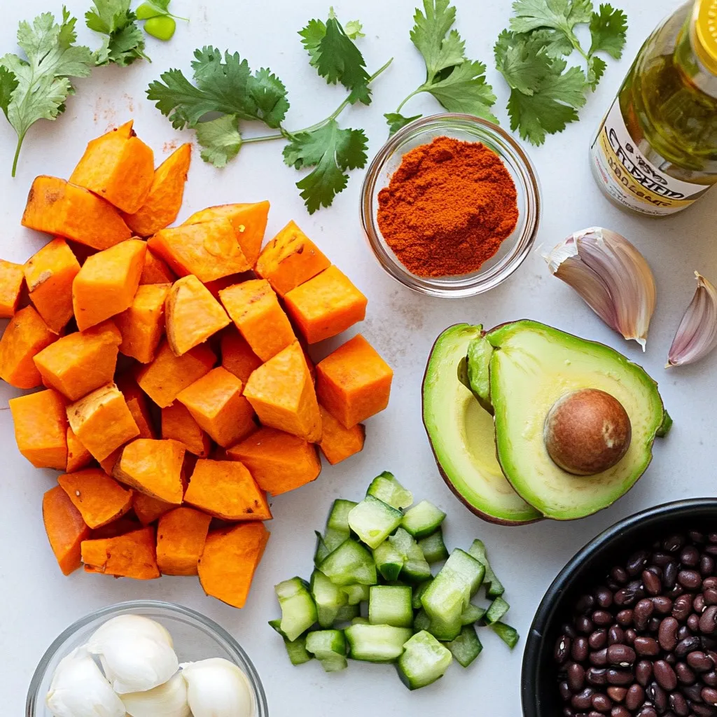 For a hearty and tasty sweet potato black bean chili, gather these key items: