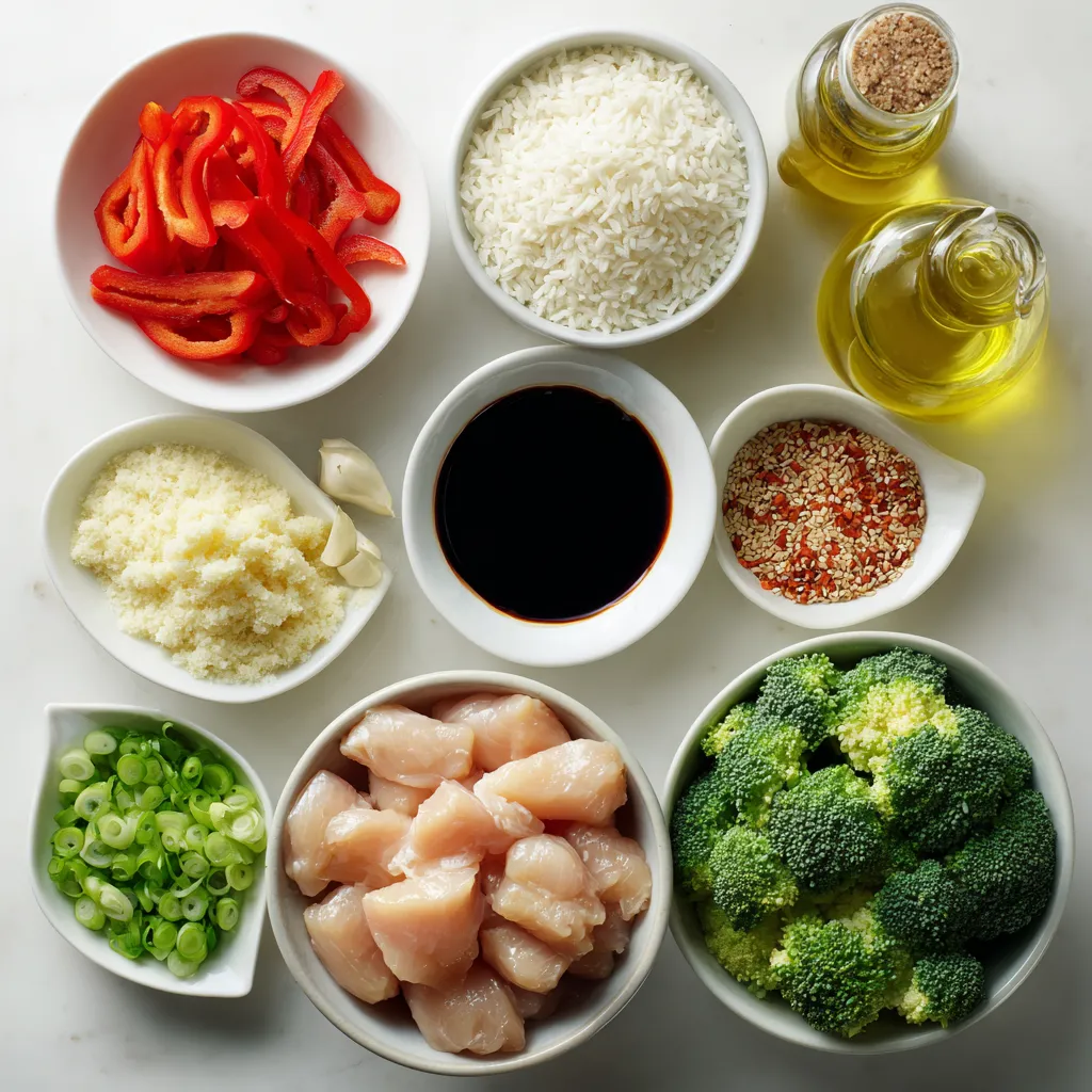 Minced garlic and grated ginger enhance the flavor. They add warmth and brightness. Red bell pepper and broccoli are colorful and nutritious. They cook quickly and stay crisp.