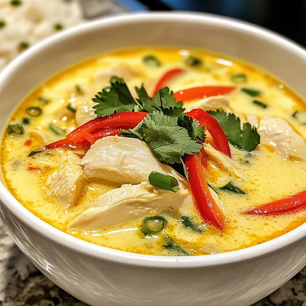A flavorful and aromatic soup made with coconut milk, chicken, and fresh herbs.