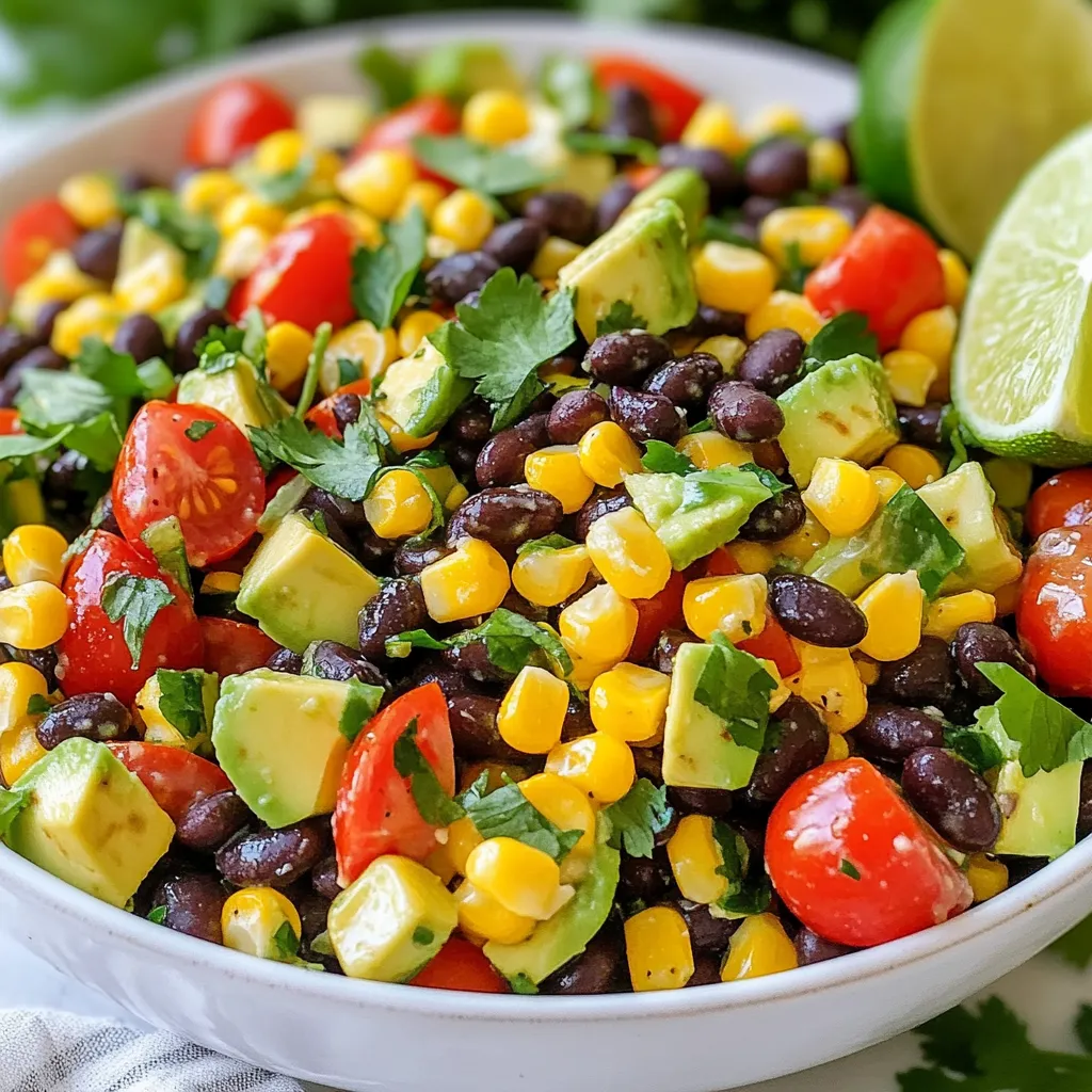 A refreshing and vibrant salad with black beans, corn, and fresh vegetables, perfect for summer gatherings.