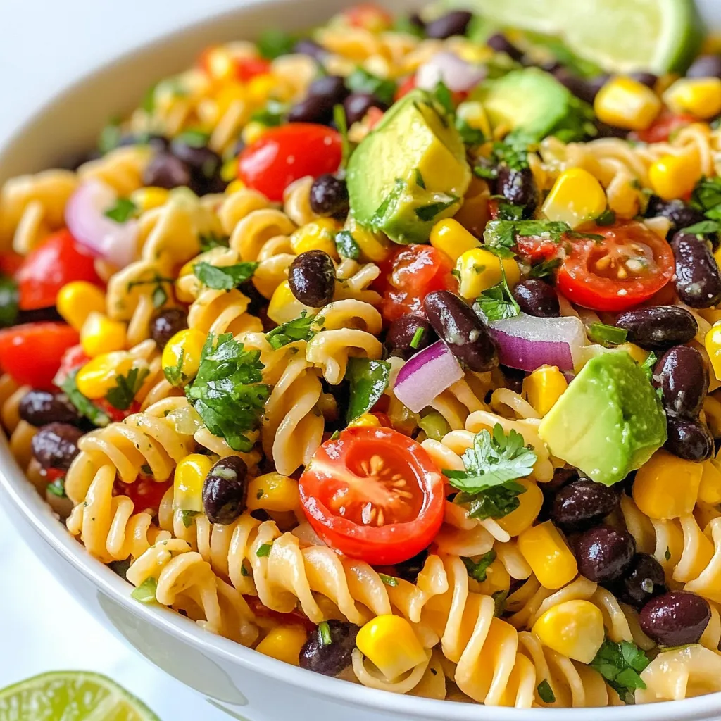Chill the salad in the refrigerator for at least 30 minutes. This helps the flavors mix well. When ready to serve, you can garnish with more cilantro and lime wedges for added flair. Enjoy your colorful, fresh Zesty Southwest Pasta Salad!