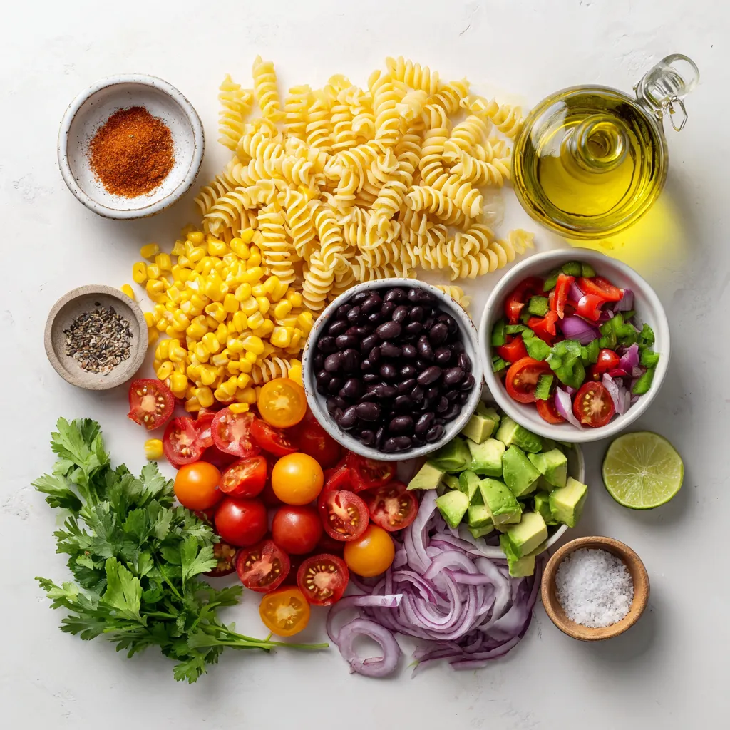 To make Zesty Southwest Pasta Salad, gather these fresh and colorful ingredients: